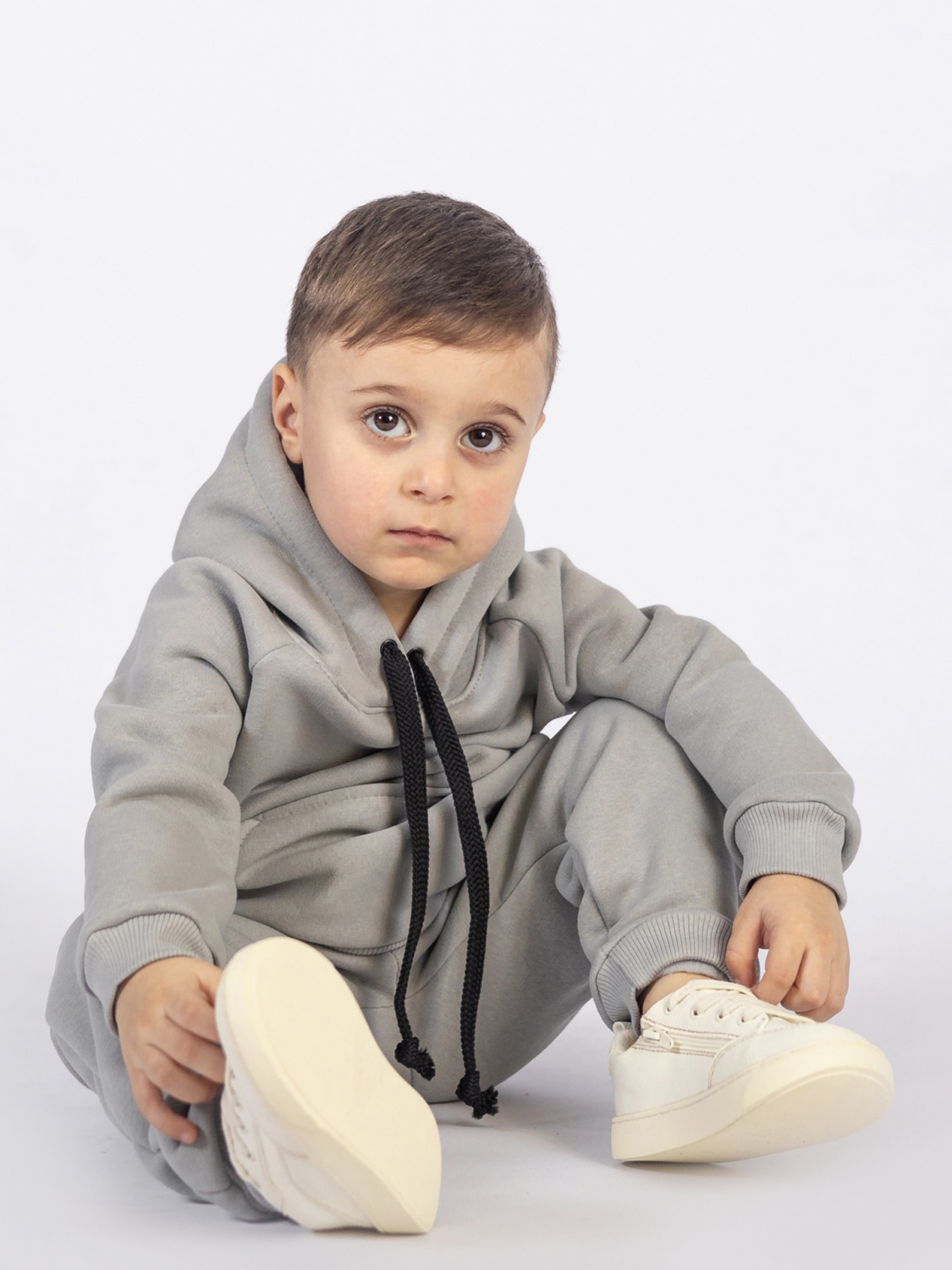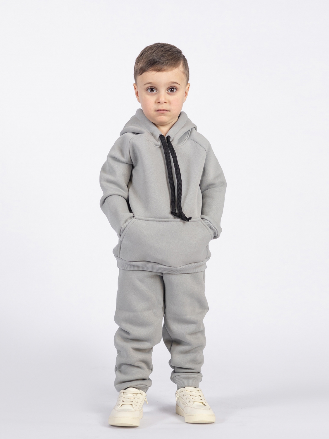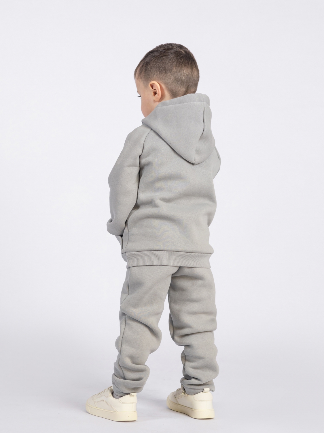 Купить оптом 296-С. Свитшот с капюшоном + Штаны, хлопок 65%, 35% ПЭ, 3-х нитка (начес) серый 122,128,134,140 в Ялте