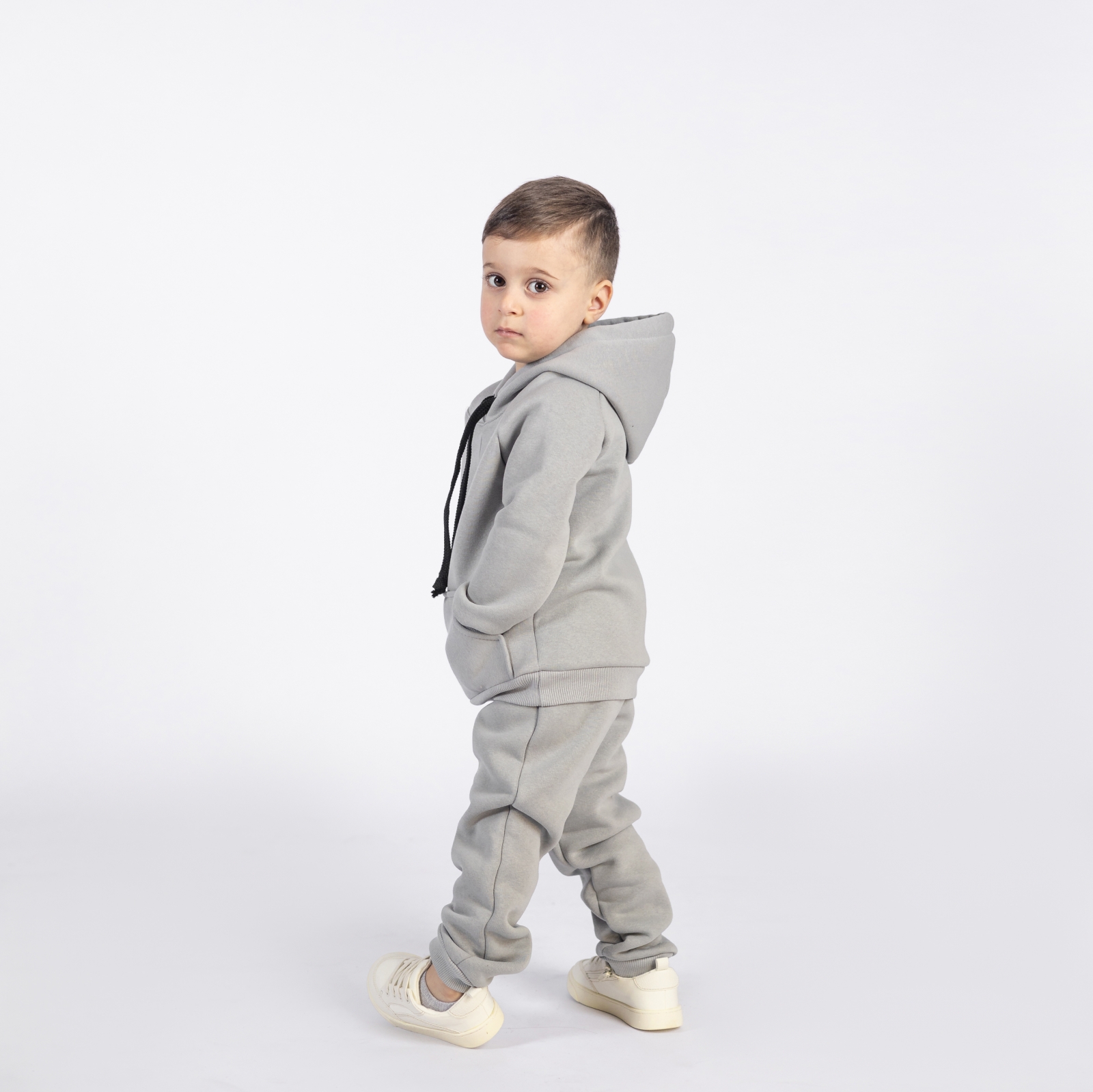 Купить оптом 296-С. Свитшот с капюшоном + Штаны, хлопок 65%, 35% ПЭ, 3-х нитка (начес) серый 146,152,158 в Ялте