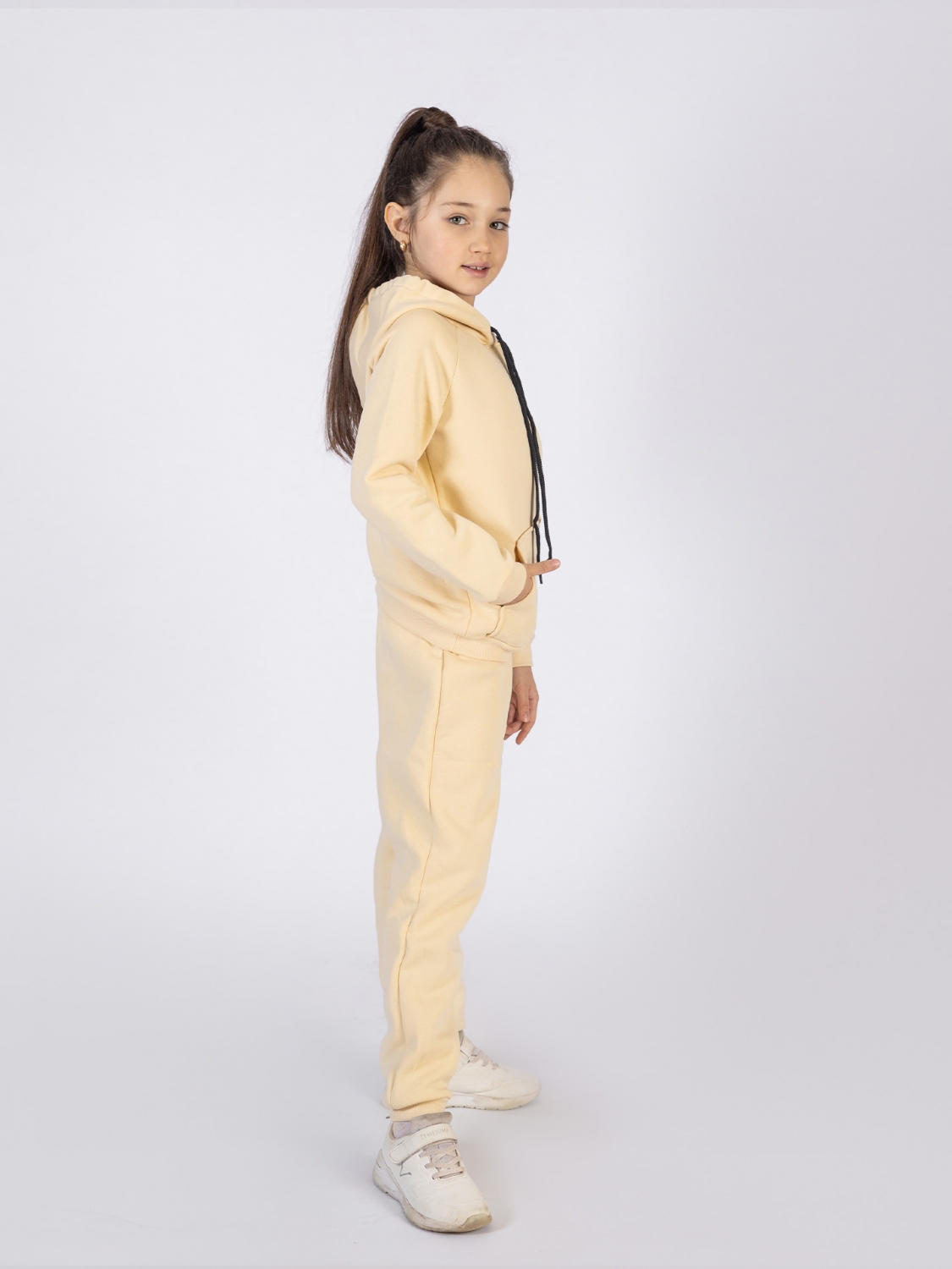 Купить оптом 296-СЛ. Свитшот с капюшоном + Штаны, хлопок 65%, 35% ПЭ, 3-х нитка (начес) сливочный 98,104,110,116 в Ялте