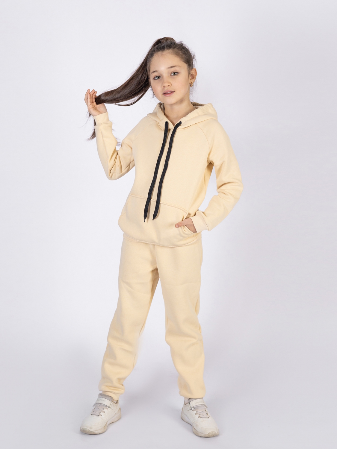 Теги: Детские костюмы оптом от производителя. 296-СЛ. Свитшот с капюшоном + Штаны, хлопок 65%, 35% ПЭ, 3-х нитка (начес) сливочный 98,104,110,116 цена,отзывы официальный сайт "Стеша Ялта"