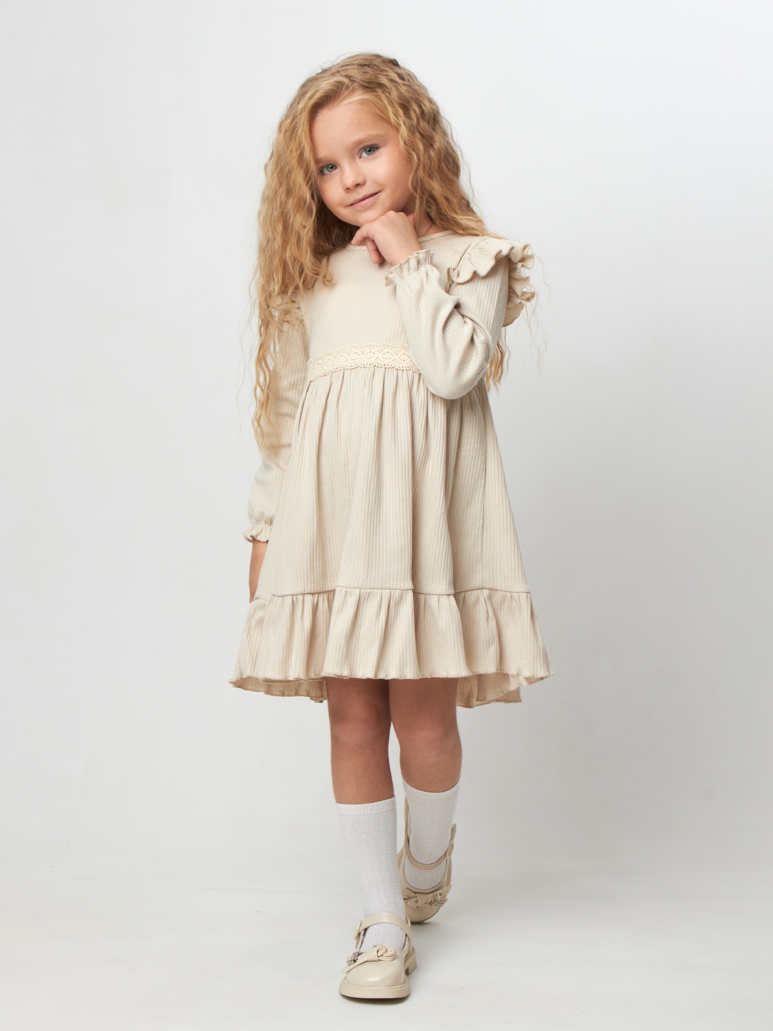 Теги: Платья детские из мулина оптом. 332. Платье детское из лапши, хлопок 100%, бежевое, р. 98,104,110,116 цена,отзывы официальный сайт "Стеша Ялта"